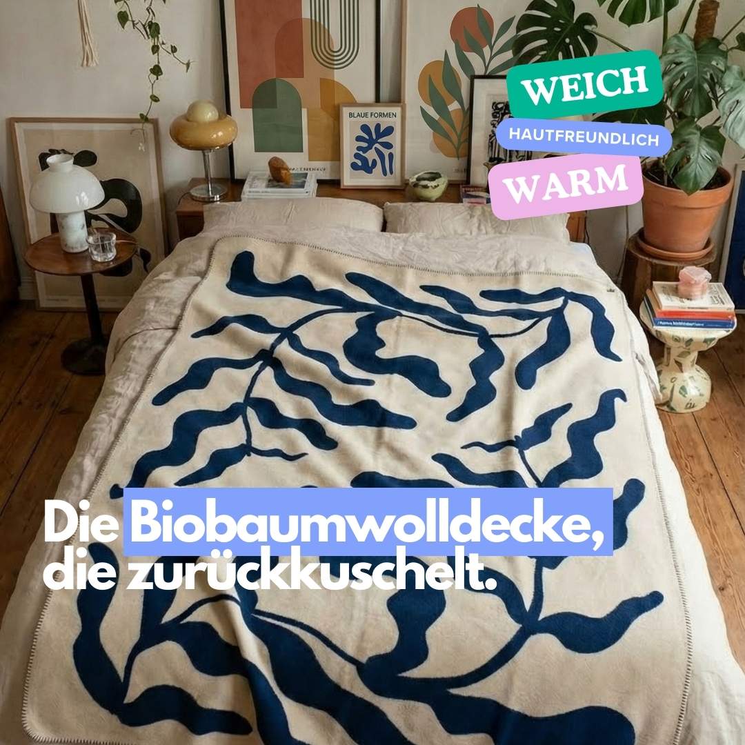 Schöne, nachhaltige Biobaumwolldecke mit Blitzversand. Daumen hoch.